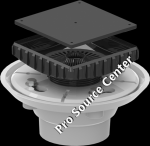 Description: Ebbe Shower Floor Drain Square Riser and Drain. 4" Square Ebbe Riser. Turns a Round Drain into a Square Drain. Your Choice of 2" PVC or ABS Drain. Comes with 3" round Hair Trap and square Construction Plug.