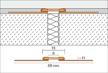Schluter-DILEX-EKSB is a surface joint profile for thinner floor coverings with stainless stell anchoring legs and a 1/4" (6 mm)-wide, soft thermoplastic rubber movement zone that separates individual fields in the floor covering and forms the visible surface. The movement zone is available in 4 different colors.