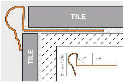 TREP-FL Decorative Stair-Nosing Profile Length H = Tile thickness Stainless steel 304 (E) Brushed stainless steel 304 (EB) 2.5 m - 8' 2-1/2" 9mm - 11/32" FL90E FL90EB 11mm - 7/16" FL110E FL110EB 12.5mm - 1/2" FL125E FL125EB 1.50 m - 4' 11" 9mm - 11/32" FL90E/150 FL90EB/150 11mm - 7/16" FL110E/150 FL110EB/150 12.5mm - 1/2" FL125E/150 FL125EB/150