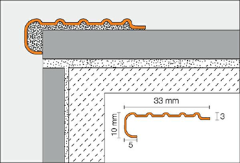 - Protects tiled stair edges and provides and easily visible, slip-resistant stair nosing wear surface.