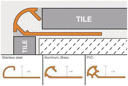 - 2.5 m (8 2-1/2") profile length; For tile 4.5 mm - 15 mm (3/16" - 9/16") thick.