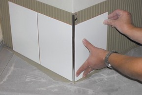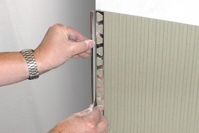 - Using a notched trowel, apply thin-set mortar to the area where profile is to be placed. If Schluter-RONDEC is to be used as edging for an outside wall corner, finish tiling one wall first; then trowel thin-set mortar over the corner area of the second wall.