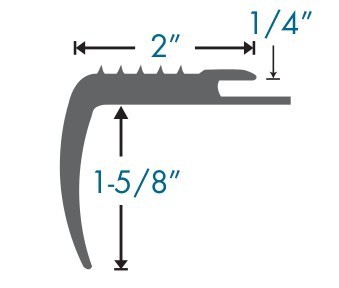Description: Loxcreen 4220 1-5/8 Inch Drop Commercial Friction-Type Insert Nosing. 1-5/8" Drop Commercial friction-type insert nosing. For carpet or tile up to 3/8" thick. Also available with abrasive strip. Notched for easy installation. Sold per 6ft piece.